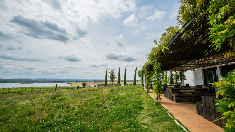 Finally, the wood and stainless steel with the Reguengos de Monsaraz typical rugs generate a dialogue of materials that embrace all the structural concrete of the cellars.