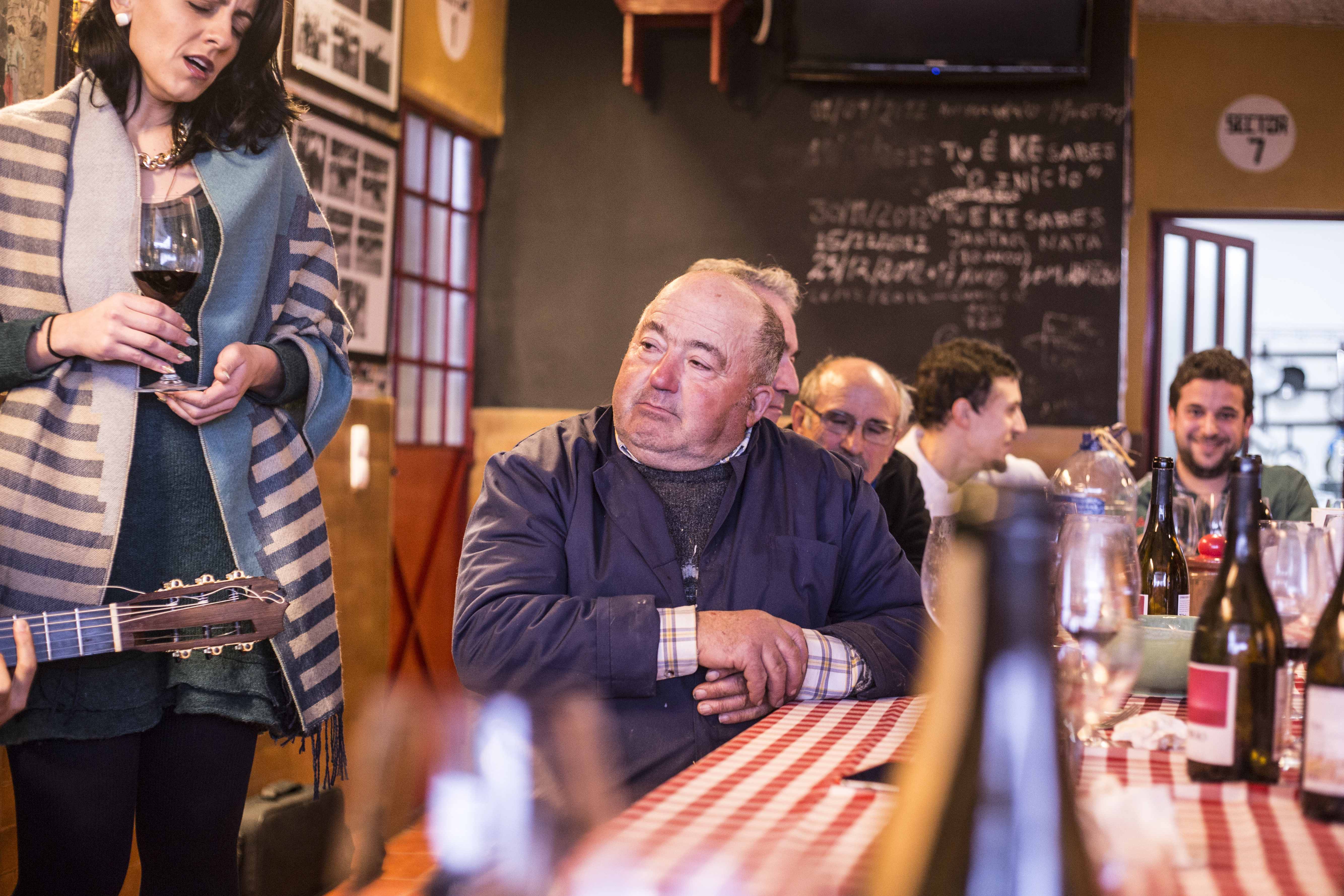 Enquanto esperávamos que estivesse pronto, provámos costeletas grelhadas apenas com sal e pão saloio. Como banda sonora, tivemos o projecto Três Bairros, três músicos amigos do chef que se juntaram a nós para o almoço.