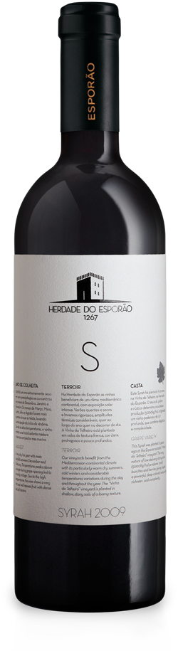 Nasceu na Vinha do Telheiro onde, há 12 anos, foi plantada a Syrah em solos de textura franca, cor clara, pedregosos e pouco profundos.